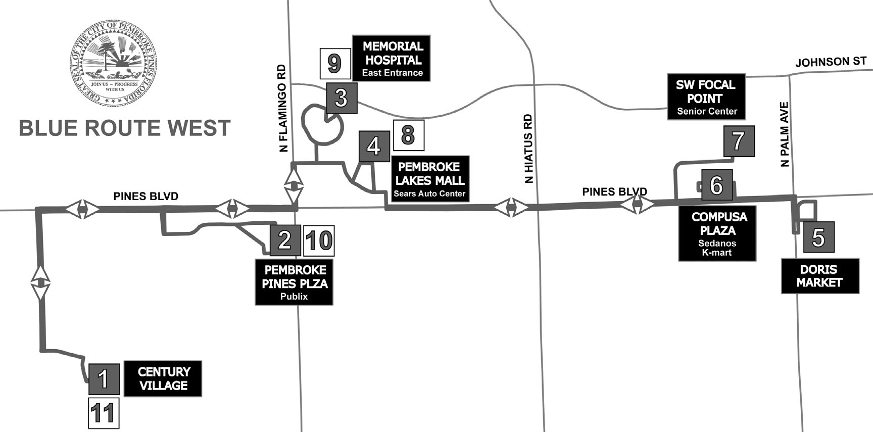 Lakes Mall, Memorial Hospital West • Connections may also be made at Pembroke